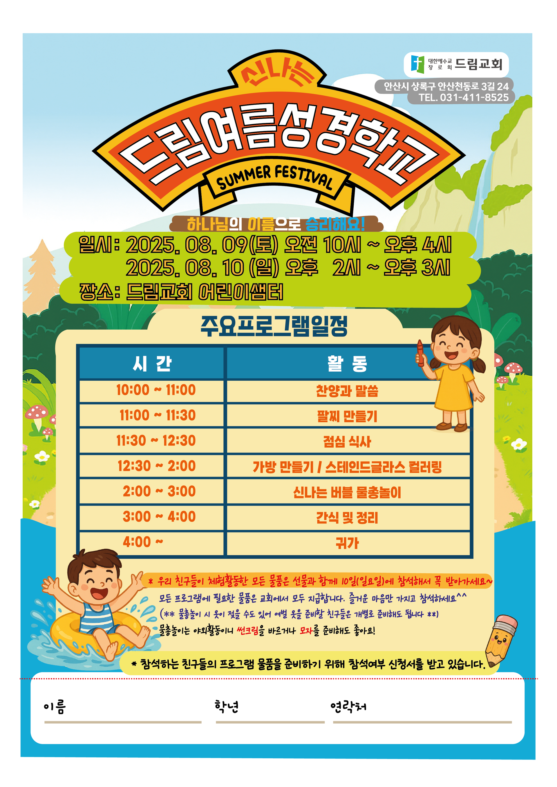 드림여름성경학교 팜플렛